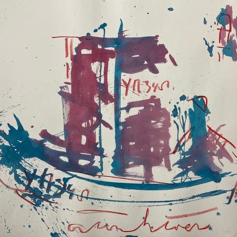 Kunstværket er i god stand og lavet med oliekridt (mange farver anvendt) på tykt høj-kvalitets papir. På undersiden er det fuldt signeret.