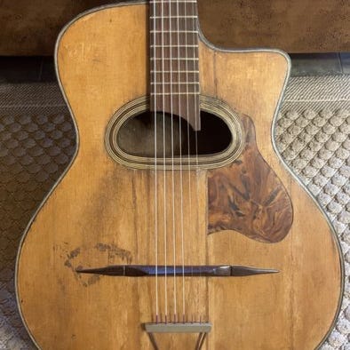 Denne guitar er afledt af de guitarer, der er designet af Mario Macaferri for firmaet Selmer. Den blev kendt gennem Django Reinhardt og hans Hot Club de France.