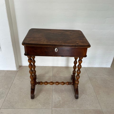 Antik sybord med intarsia og skuffer