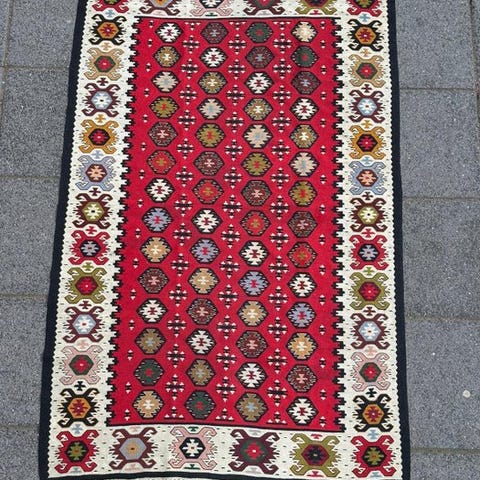 Håndknyttet moldovisk lang løber kilim tæppe i uld på uld, flerfarvet, dimensioner 530 x 97 cm, cirka 1980, generelt i god stand med tegn på alder og brug, professionelt renset, vægt 5 kg. Klik på den blå "gå til varen" knap, for at købe eller byde på denne vare. Den samlede pris vil blive vist inden du afgiver dit bud.