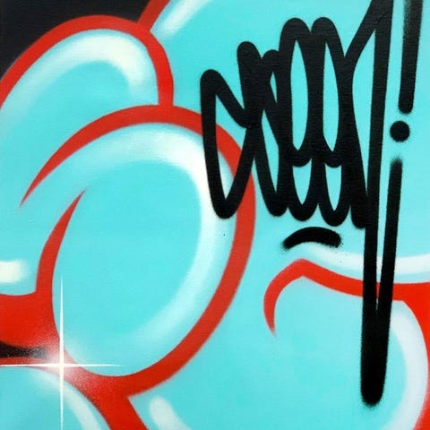 Ved at blande dristige street art-motiver med popkunstens visuelle sprog, afspejler værket den vibrerende spænding mellem bykulturen og den moderne æstetik.