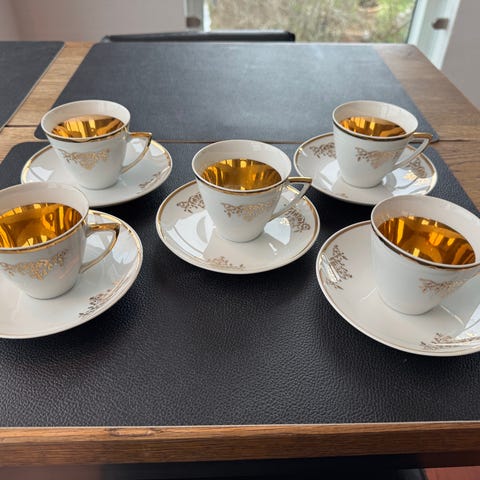 Porcelæn, kaffekop med underkop, og sidetallerken