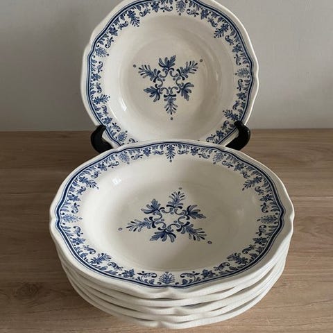 Del af bordservise i fajance fra Gien, Delft-model, inkluderer