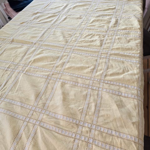 Flot vintage dug med broderet blomstermotiv. 100x100 cm