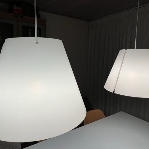Den store Titania lampe fra Luceplan incl et sæt ubrugte farvefiltre, der kan monteres for at filtrerer lyset