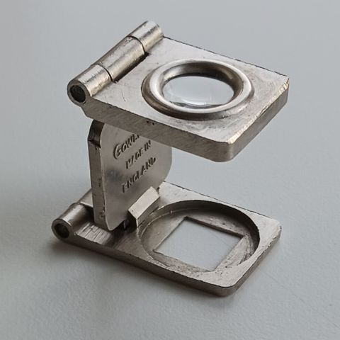 Bordlampe med Fresnellinse og fleksibel arm, forstørrelse x 4 Lup mål: 25 x 18 cm. Fodbase: 19 x 13 x 4,5 cm. Højde: 50 cm. Vægt: 1,4 kg. Brugt få gange.
