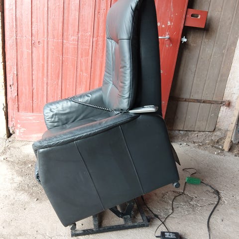 Meget stærk 2 motores sort ægte læder løfte stol uden revner eller slid skader, ja som ny uden slid skader.