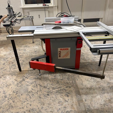 Digital højde, smig justering på klinge. digital højdejustering af forridser. Maskinen kan også tændes på slæden. Sælges da vi opgradere til en større model