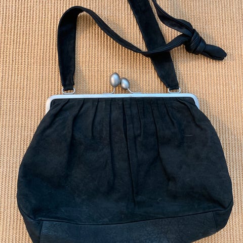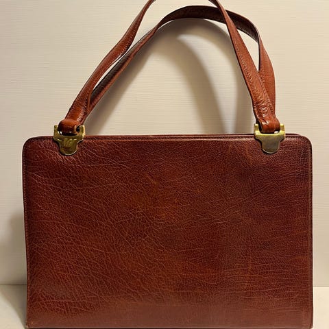 Billede nr. 2, 3 og 4 viser tasken åben. På billede 3 og 4 ses den ubetydelige krakelering i venstre side.
