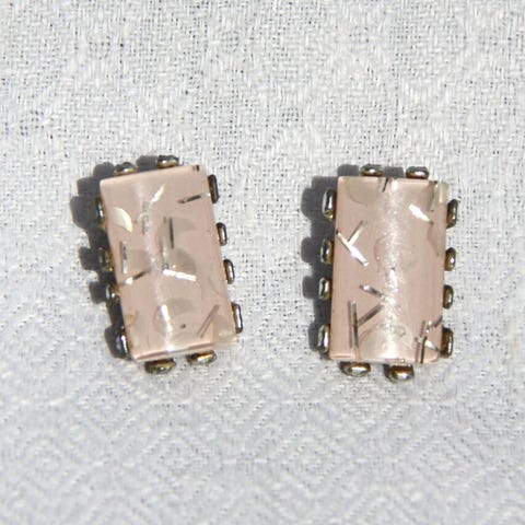 Pleksiglas med indstøbt glimmer og knuste abeloneskaller, højeste mode i halvtredserne. Disse er dog moderniseret med nye ørestikker.