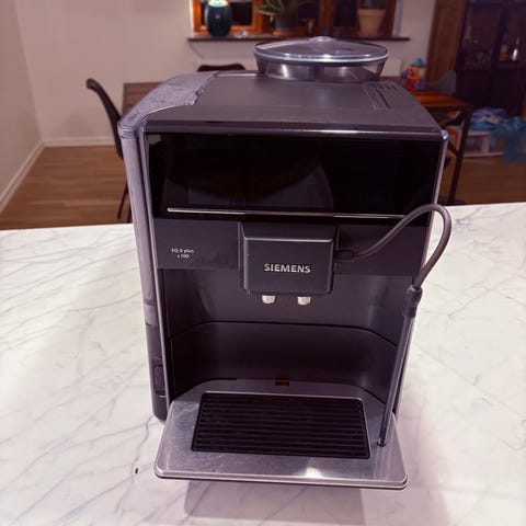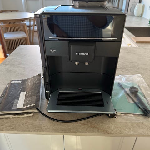 Sælger denne Siemens espressomaskine med tilbehør inklusive mælkebeholder og renseprodukter. Maskinen er købt i oktober 2020 og brygger dejlig espresso og kaffe, men grundet opgradering til en endnu mere avanceret maskine, skal den videre til en ny ejer.