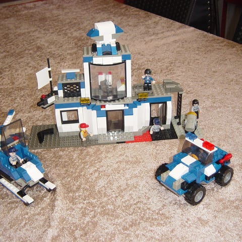 Lot med diverse Lego Space rumskibe og figurer. Indeholder flere forskellige modeller og astronauter.