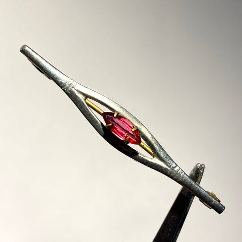 Forgyldt ell bronze? Vintage broche, stemplet meka og med grøn emalje afbildning af vikinger samt et par helleristninger