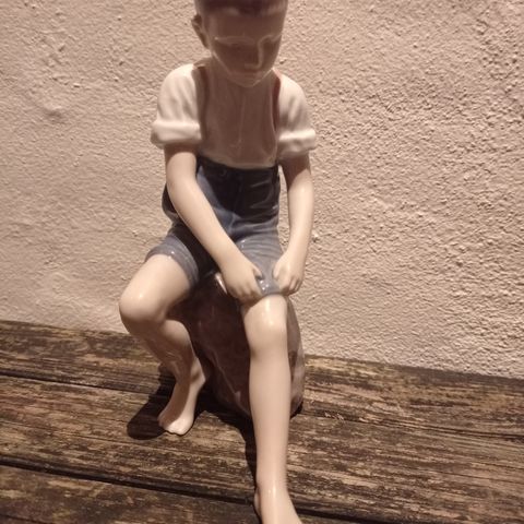 Dreng på sten, Bing & Grøndahl figur nr. 1757 fra B&G (str. H. 20,5 cm)