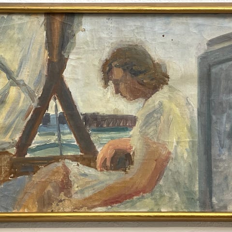 På bagsiden fremstår kunstnersignatur.