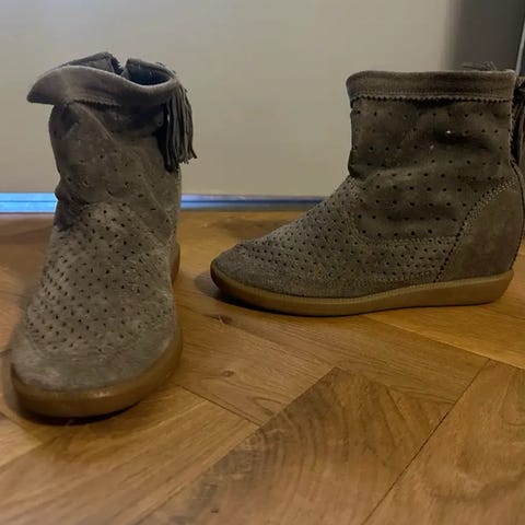 Superlækre og velholdte grå støvletter i skind med lynlås bag til