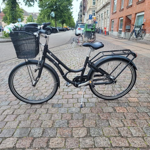 Pæn og velholdt Kildemoes Birkerz i 24 tommer med to gode punkterhæmmende dæk, fastmonteret lygter, godkendt lås med to nøgler samt fodbremse til bag og håndbremse til foran. Cyklen er gået efter smurt og justeret og har fået