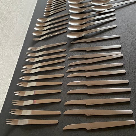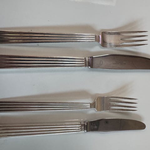 Bestikket blev skabt af den svenske Prins Sigvard Bernadotte tilbage i 1939 og er kendetegnet ved dets rustfrie blanke stål og kannelerede skafter.