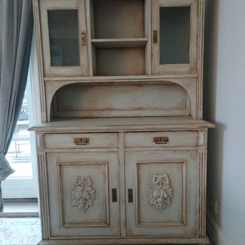 Flot stort vitrineskab / kommode / skænk / skab / Hængeskab / glasskab kan bruges på mange måder da det kan deles . Lågerne åbner og lukker som de skal syns låsen er lidt stram men der holder sig lukke selvom man ikke låser det. Flytbar hylder .. mål H 220cm. D forneden 50cm. D forover 35cm.. har været brugt til spisestel . Mulighed for levering men skal køre 2 gange så pris for levering må vi lige snakke om 😊