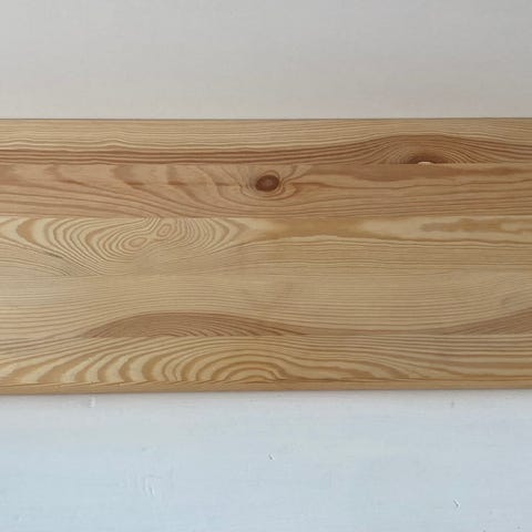 Fin, ældre væghylde i træ med sort plade øverst, med et enkelt og grafisk udtryk.