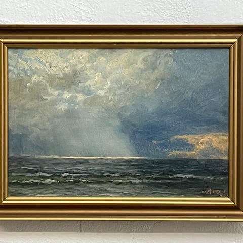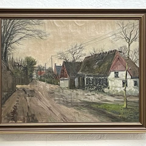 Originalt oliemaleri – “A Cottage by the Sea” – signeret Carl Nielsen