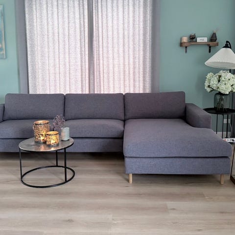 Smukkeste støvet blå chaiselong sofa, levering muligt