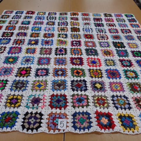 Lille sødt babytæppe i oldemors-tern hæklet i 100% bomuld i brune nuancer, af min mor, i røgfrit hjem.