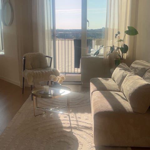 Lys/beige fløjlssofa fra Living&More - model Karl.
