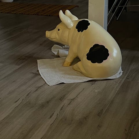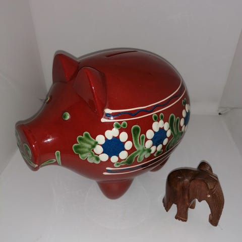Ca 21 cm lang og 11 cm høj. Har knækket det halve af det ene øre af - se billeder