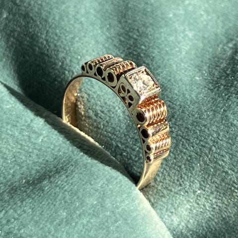 guldstemplet er meget utydeligt men med et lup kan man lige ane 585. altså 14 karat
