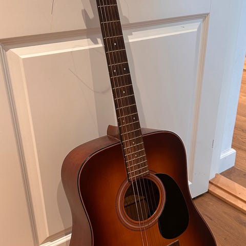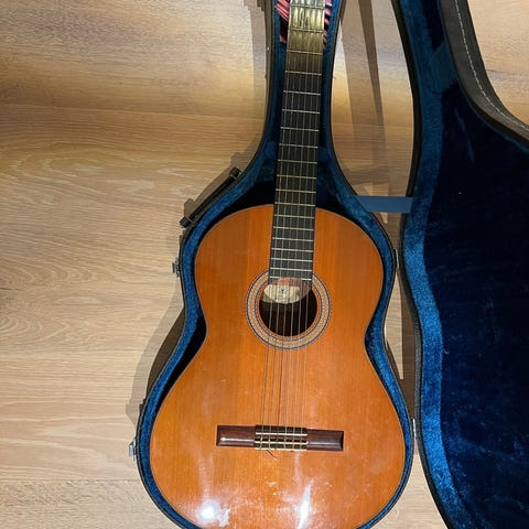 Guitaren er i god brugt stand. Der er kosmetiske brugsspor på toppen (se billeder), men ingen revner, strukturelle skader eller løse limninger. Halsen er lige, og den spiller rent hele vejen op. Klar, varm og balanceret tone – rigtig god både til klassisk og fingerspil.