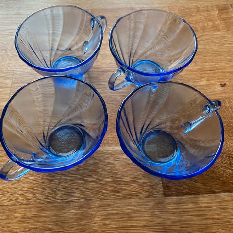 4stk. ravfarvede retro kaffekopper med underkop. Pris pr. sæt kr. 50,00.