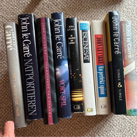 Har lidt bøger af John Le Carré til salg.