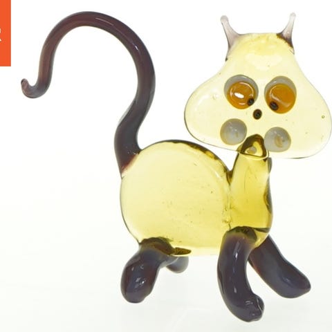 En glasfigur formet som en svane med en klar glasstruktur og en dekorativ farveblanding af hvid og lilla i kroppen. Størrelsen er cirka 8x7 cm.