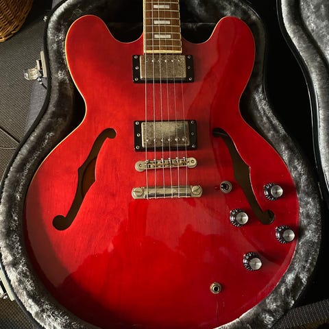 Guitaren befinder sig i Slagelse, hvor den kan prøves og afhentes