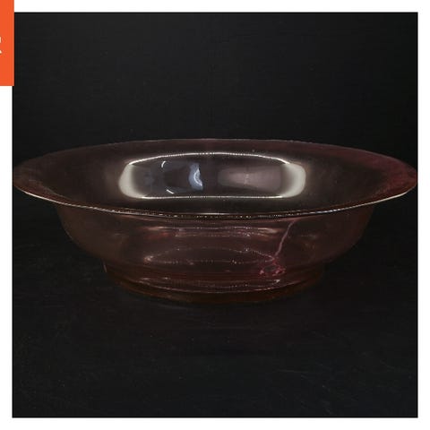 Skålen er lavet af glas med en diameter på 15 cm. Den har en dekorativ mønster som består af blade-lignende indgraveringer og hviler på tre små fødder. Skålens farve er lyseblå, hvilket gør den ideel som en dekorativ genstand til hjemmet eller kan bruges til servering af mindre snacks eller frugt.