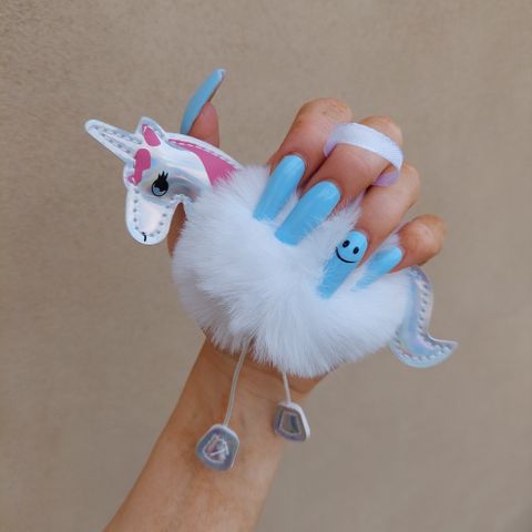 Denne farverige legetøjsfigur er designet som en enhjørning og har en klips, der gør den let at fastgøre til forskellige overflader som en barnevogn eller barneseng. Den er 19 cm høj og lavet af blødt tekstilmateriale. Figuren har en lilla krop med farverige detaljer som en gul horn, pink og blå mønstre, samt forskellige teksturer og mønstre på benene. Legetøjet er med mærket 'Playgro', som er kendt for at fremstille legetøj til små børn.