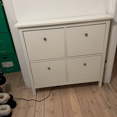 Originalt IKEA HEMNES skoskab i mørkt træ, klassisk og tidløst design. Skabet er smalt og passer perfekt til entré eller gang, også hvor pladsen er begrænset.