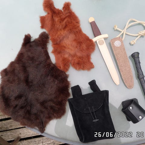 Vikingeskjold, I træ. Højde på længste punkt 44 cm. Bredde 30 cm
