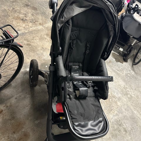 Emmaljunga klapvogn med mørkeblå og brune detaljer