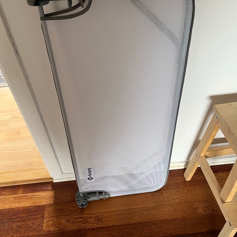 IKEA børnesikkerhedslås i hvid, designet til at forhindre børn i at åbne skabe eller skuffer. Fremstillet i holdbart materiale og egnet til børneværelser for øget sikkerhed.