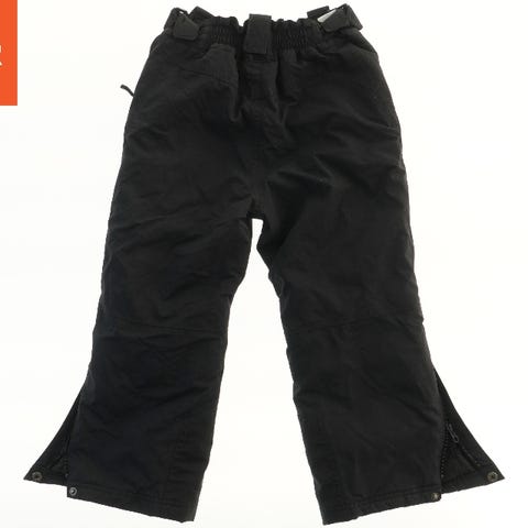 Disse sorte vinterbukser har justerbare seler og en forstærket kant ved benene. Der er lynlåsåbninger nederst og en lukkemekanisme ved livet til sikring af pasform.