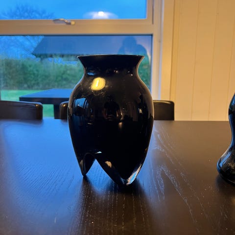 Holmegaard kugleformet vase i klart blåtonet glas .