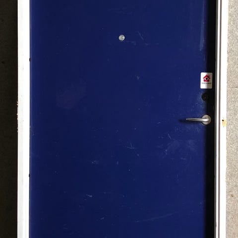 Yderdør i hvid træ med Dørens mål er 948x2118 mm. Velegnet til udvendig brug som hoved- eller bagdør.