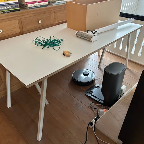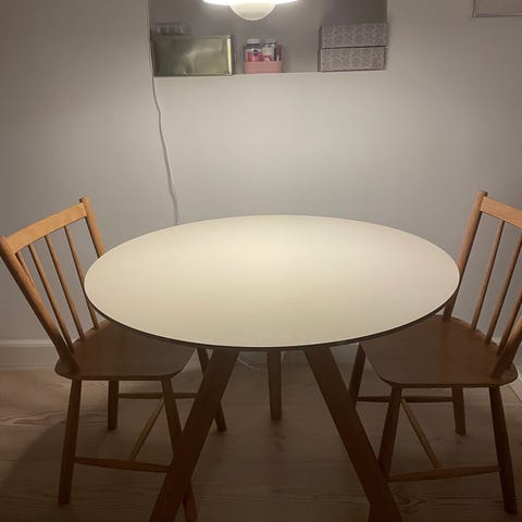 Fint bord - har været flittigt brugt - mangler lige en skrue (se foto). Man kan overveje at male bordpladen