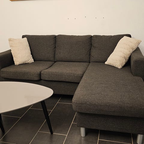 Sofaen fremstår i ok stand, men en rens vil gøre den endnu pænere.