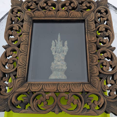 I flot ramme,ramme mål 36cm høj,32 cm bred,figur 15 cm,gammel,kan sendes.
