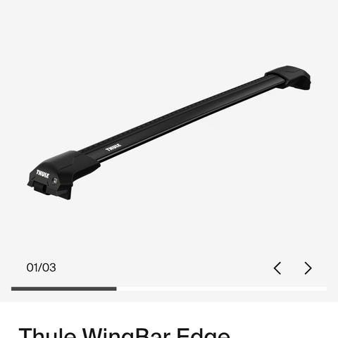 Thule WingBar Edge tagbøjle i sort og sølv farve. Designet til montering på biler for at bære ekstra last såsom cykelholdere, tagbokse eller andet udstyr. Fremstillet af holdbare materialer med fokus på aerodynamik og støjreduktion.