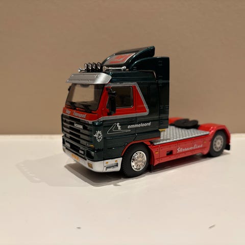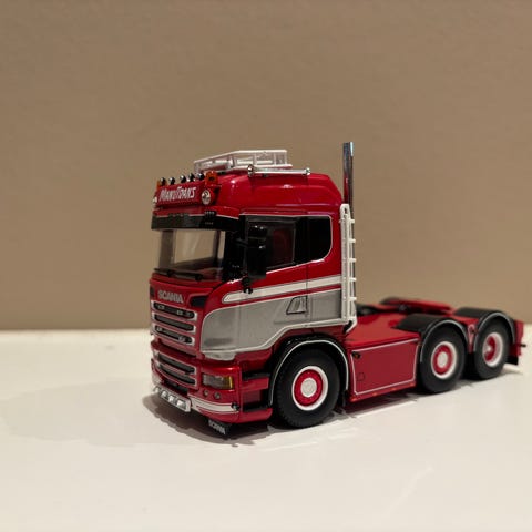 WSI Models Scania lastbil i skala 1:50 med blå farve. Modellen er en detaljeret miniature af en Scania lastbil, velegnet til samlere og modelentusiaster.