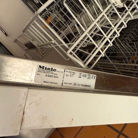 Miele opvaskemaskine G6000. Den virker som den skal men har dog en kurv hvor rust fremtræder fra selve kurven.